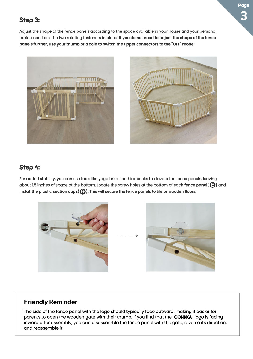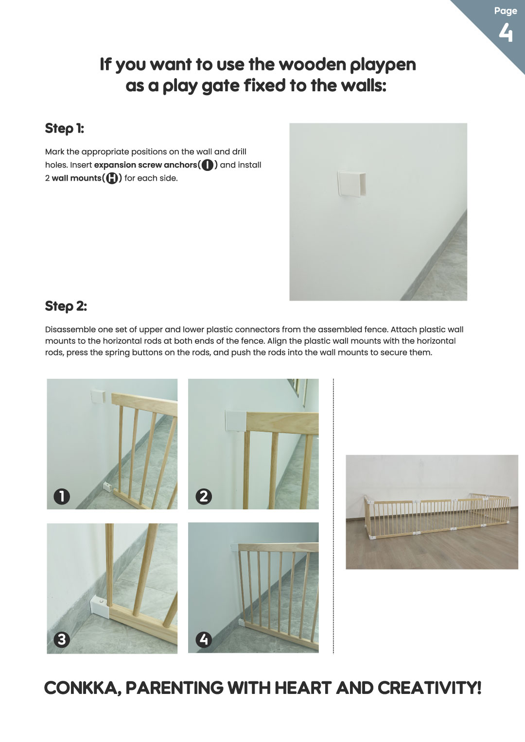 How to assembleCONKKA playpen? Check the Assembly Instrunctions 01 02 03 04 Contact CONKKA for instant 7/24 support? info@conkka.com Download the Instrunctions